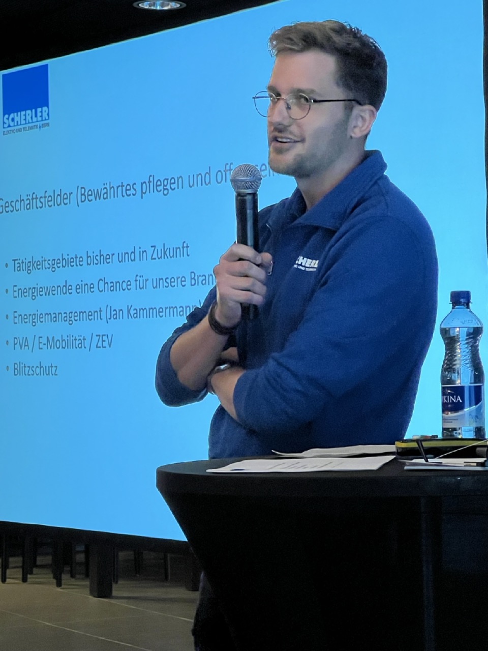 Jans Energiekonzepte sind eine neue Dienstleitung bei Scherler AG, diese beinhalten Machbarkeitsstudien und die Wirtschaftlichkeitsberechnung von geplanten PV-Projekten. Dank seinem Know-How können wir nicht nur bestehende Kunden-Energieprojekte optimieren, wir eröffnen uns auch einen neuen Kreis potenzieller Kundschaft, die «nur» ein Energiekonzept wünscht, ohne dass wir die ausführende Firma wären: «Die Stockwerk-Eigentümerschaft einer Grossüberbauung mit vier Mehrfamilien-Häusern und 90 Parteien möchte auf ihren Dächern Photovoltaik installieren. Die grösste Hürde wird hier sein, es allen Involvierten recht zu machen, jedem Bedürfnis gerecht zu werden. Das ginge ohne vorgängiges Energiekonzept mit gescheiter Verteilung des Solarstroms gar nicht. Deshalb wird mein Konzept unterstützen, damit die Stockwerk-Eigentümer überhaupt einen Entscheid fällen können.» Neben den konzeptionellen Phasen mit Bedürfnis-Analysen, Begutachtungen, Präsentationen, Bewilligungen und Ausschreibungen, inklusive Offertvergleichen bietet Jan auch die Begleitung der Realisierung an. So wie es ein Bauleiter tut, übernimmt er die Koordination für die Ausführung eines grösseren PV-Projekts.
