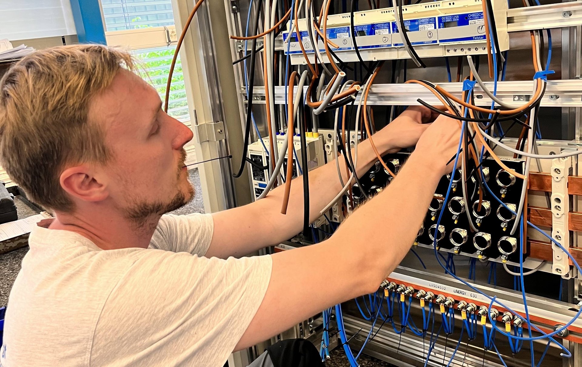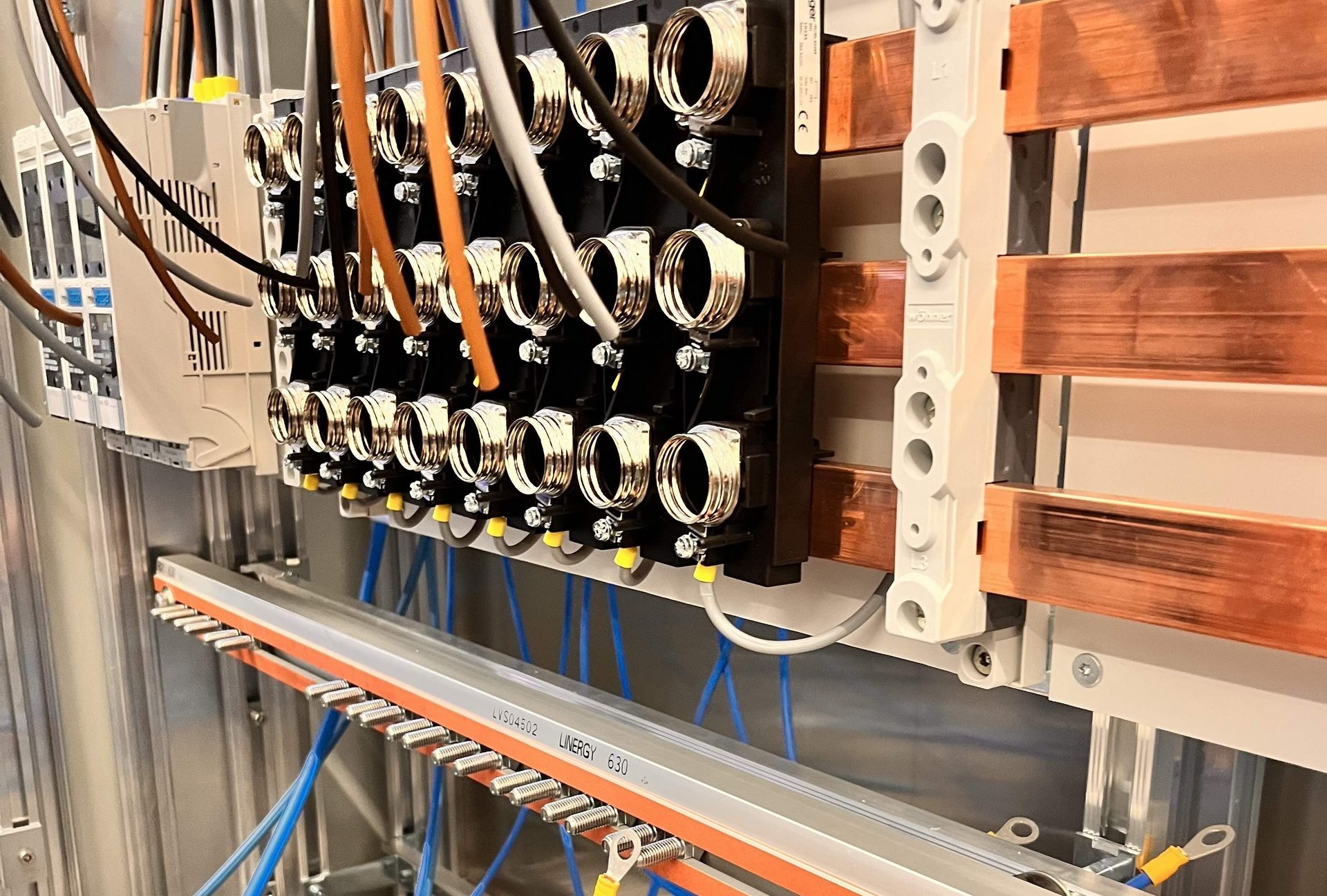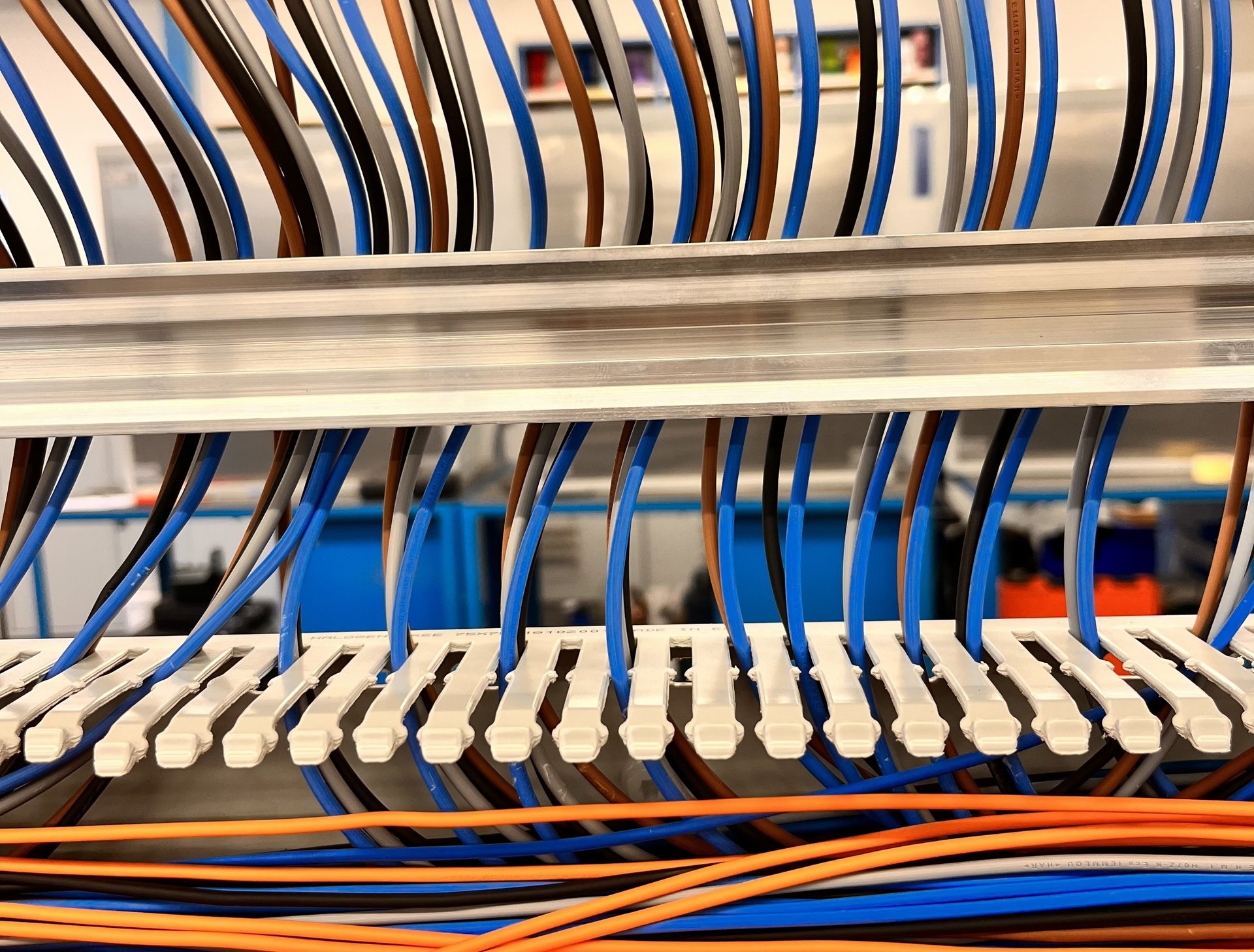 Eine drei Meter lange Anlage wird hier gebaut, zusammengebaut, verdrahtet, verkabelt und ausgeprüft, bevor sie gezügelt wird. Das bedeutet für den Umzug der Schaltanlage: Die Felder auseinandernehmen, die Anschlüsse anschreiben und zügeln. Vor Ort auf der Baustelle bauen wir wieder auf. Die Verbindungen, wo A nach A geht und B nach B, wird bei uns in der Ausprüfung bereits inhouse kontrolliert.